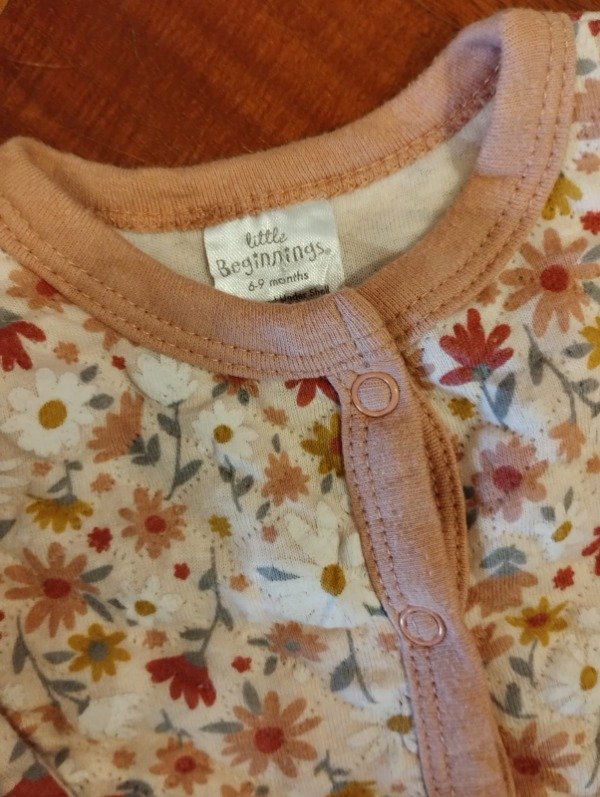 LITTLE BEGINNINGS - Enterito gruesito algodón flores 6-9 meses sin uso