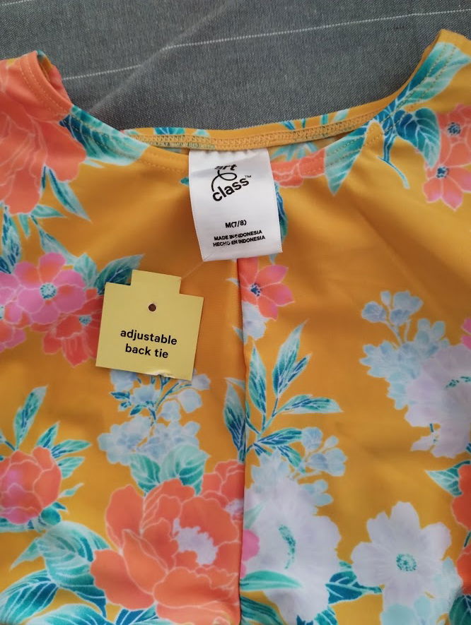 Descripción: Parte de arriba de bikini, top UV amarillo con flores
