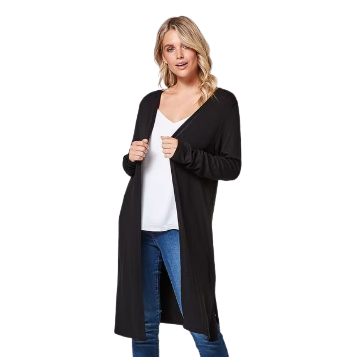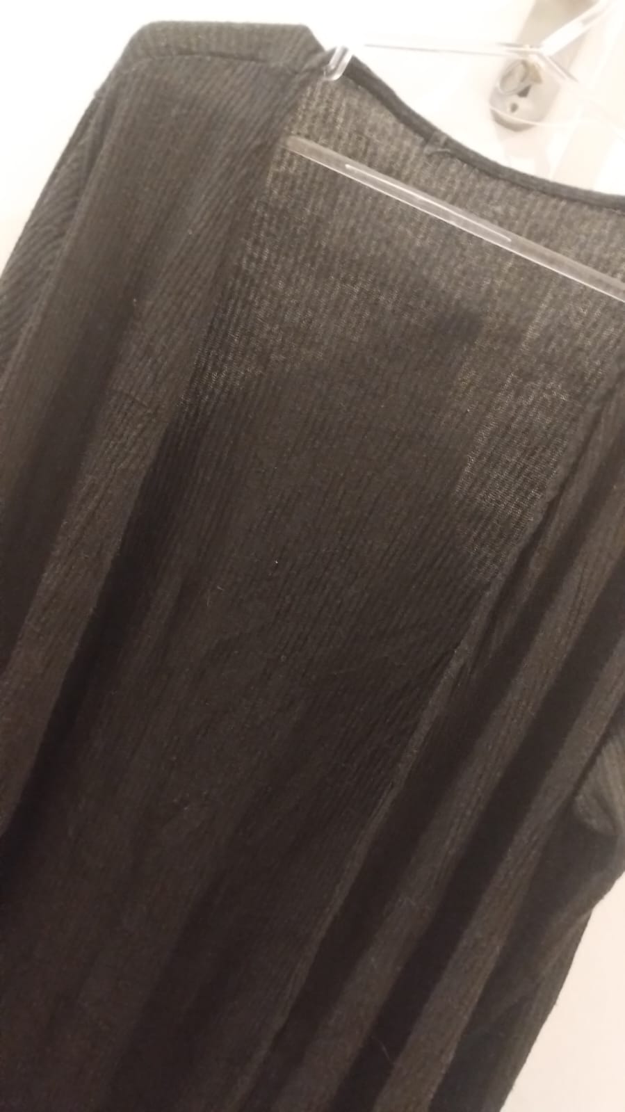 Descripción: Saquito de morley largo arriba de la rodilla, manga larga. Sin detalles